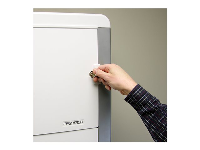 Station de travail sûre, complète et compacte. Idéal pour les chambres dont l'espace est réduit, ce système d'ajustement vertical discret propose un ajustement sans effort de 23 cm et se replie en une unité mince et compacte lorsqu'il n'est pas utilisé. Son mécanisme de verrouillage sans clé permet de protéger les données du patient et d'ainsi respecter les exigences en termes de confidentialité.
