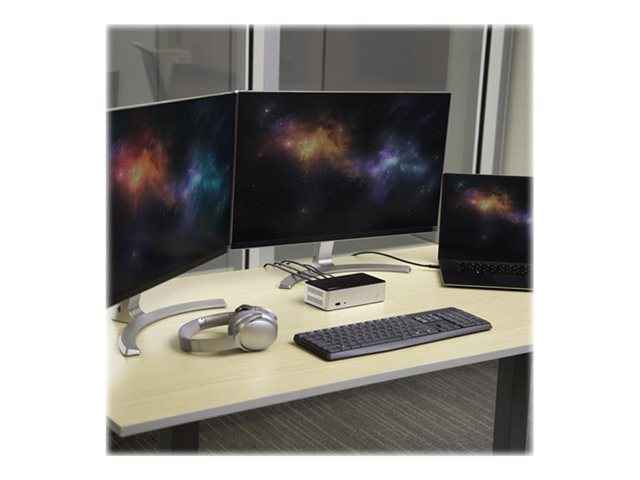 Cette station d'accueil USB-C double affichage augmente la capacité de stockage des données de votre ordinateur portable Windows et vous fait profiter de la sauvegarde de ces données. Elle facilite la création d'un poste de travail à deux écrans grâce à la prise en charge du DP Alt Mode et de la norme DisplayPort Multi-Stream Transport (MST).