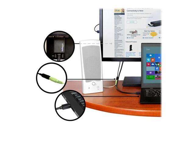 Grâce à cet adaptateur, vous disposerez toujours des connexions dont vous avez besoin. Le port audio de votre ordinateur est abîmé ou bloqué ? Avec ce câble adaptateur, vous aurez quand même du son pour regarder des présentations vidéos, écouter de la musique en travaillant ou discuter sur Skype avec vos collègues.