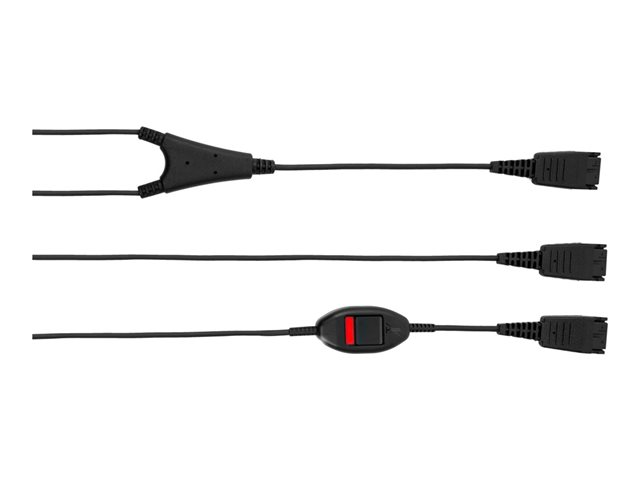Ce cordon permet à deux micro-casques Jabra Quick Disconnect de se connecter à un cordon inférieur à des fins de supervision. Une partie de ce cordon permet soit de désactiver le microphone soit de participer à la conversation à l'aide de l'interrupteur.