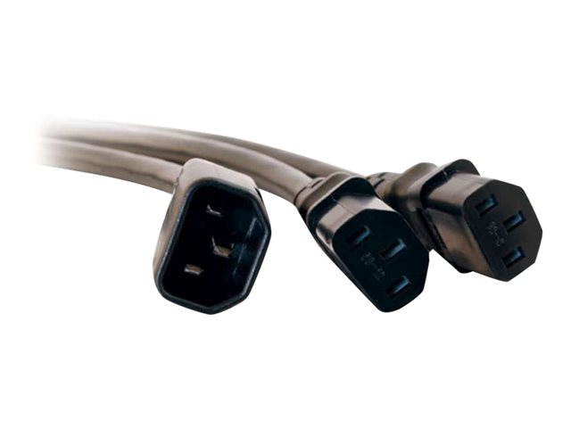 Description du produit C2G 16 AWG 1-to-2 Power Cord Splitter - répartiteur d'alimentation - IEC 60320 C14 pour power IEC 60320 C13 - 1.8 m Type Répartiteur d'alimentation Fonctions Moulé Longueur 1.8 m Connecteur Alimentation IEC 60320 C14 Connecteur (deuxième extrémité) 2 x power IEC 60320 C13 Couleur Noir Garantie du fabricant Garantie limitée à vie -