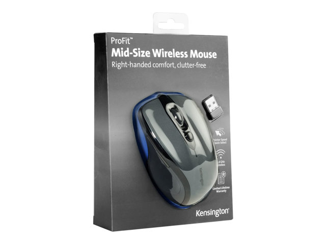 Nous avons conçu une souris capable de s'adapter à votre main et de satisfaire vos goûts. Son design ergonomique pour droitier procure des heures de confort et, avec la possibilité de choisir entre quatre coloris, elle est aussi très esthétique. Conçue pour durer, la souris sans fil de taille moyenne Pro Fit est assortie d'une garantie à vie limitée. Parfaitement adaptée aux ordinateurs de bureau comme aux portables, la souris sans fil de taille moyenne Pro Fit est dotée d'un nano-récepteur 2,4 GHz permettant de réduire les interférences dans les environnements professionnels encombrés. Le récepteur est si petit que vous pouvez le laisser sur votre ordinateur ou le glisser dans le compartiment de rangement intégré du récepteur de Pro Fit.