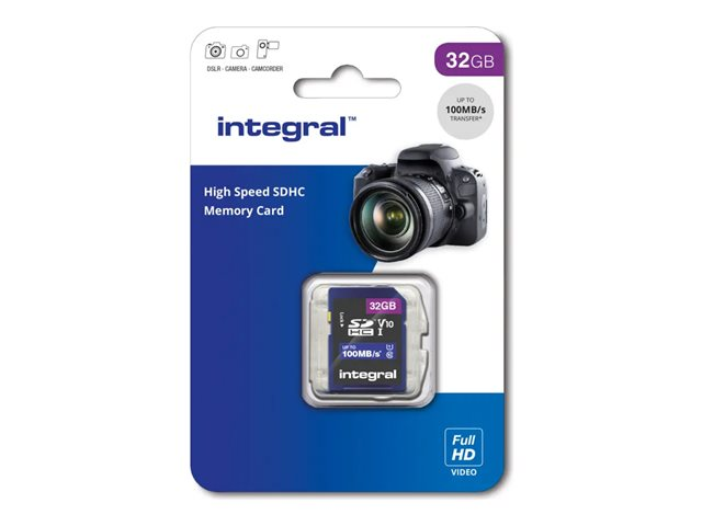 Description du produit Integral - carte mémoire flash - 32 Go - SDHC UHS-I Type du Produit Carte mémoire flash Format Carte mémoire SDHC UHS-I Capacité de stockage 32 Go Indice de vitesse Video Class V10 / UHS-I U1 / Class10 Garantie du fabricant Garantie de 5 ans -
