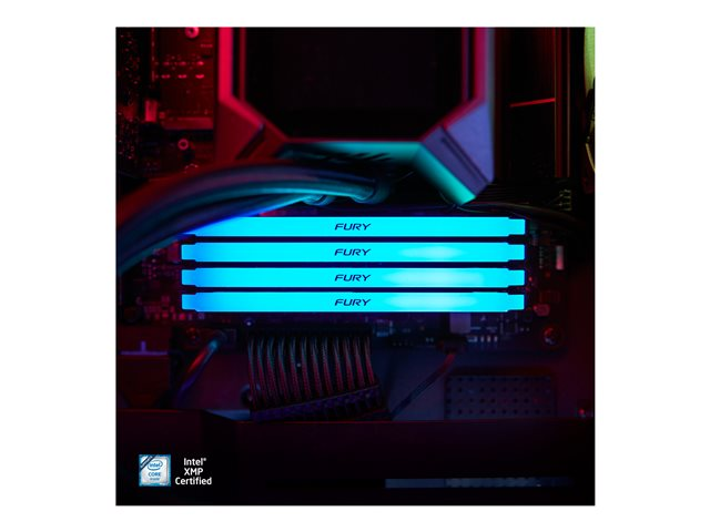 Le module Kingston FURY Beast DDR4 RGB offre une augmentation des performances avec des vitesses allant jusqu'à 3733MHz, avec un style agressif où son éclairage RGB sur toute la longueur du module produit des effets fluides et étonnants. Cette mise à niveau éblouissante et rentable est disponible à des vitesses de 2666MHz-3733MHz, des latences CL15-19, des capacités de 8Go-32Go en module simple, et de 16Go-128Go en kit. Son overclocking automatique Plug and Play à des vitesses de 2666MHz est disponible sur Intel XMP et AMD Ryzen. Le module FURY Beast DDR4 RGB reste froid grâce à son diffuseur de chaleur élégant et mince.