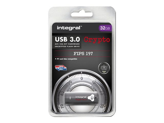 Description du produit Integral Crypto - clé USB - 32 Go Type du Produit Clé USB Type d'Interface USB 3.0 Capacité de stockage 32 Go Algorithme de chiffrement AES 256 bits, FIPS 197 Système d'exploitation requis Apple MacOS X, Microsoft Windows XP / Vista / 7 / 8 / 10 Garantie du fabricant Garantie de 2 ans -