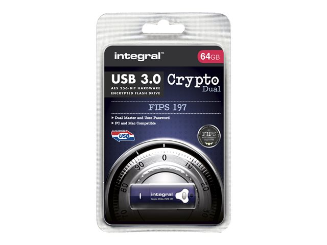 Description du produit Integral Crypto Dual - clé USB - 64 Go Type du Produit Clé USB Type d'Interface USB 3.0 Capacité de stockage 64 Go Algorithme de chiffrement AES 256 bits, FIPS 197 Système d'exploitation requis Apple MacOS X, Microsoft Windows XP / Vista / 7 / 8 / 10 Garantie du fabricant Garantie de 2 ans -