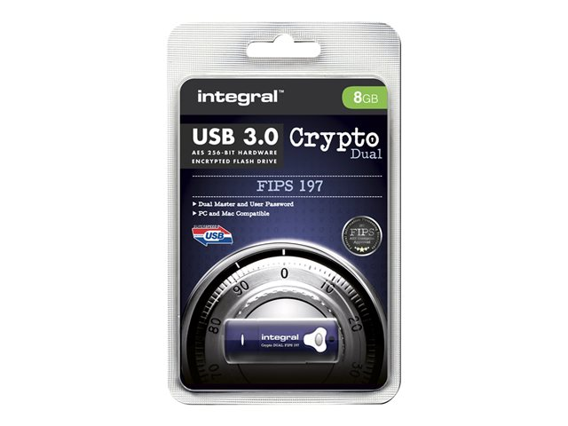 Description du produit Integral Crypto Dual - clé USB - 8 Go Type du Produit Clé USB Type d'Interface USB 3.0 Capacité de stockage 8 Go Algorithme de chiffrement AES 256 bits, FIPS 197 Système d'exploitation requis Apple MacOS X, Microsoft Windows XP / Vista / 7 / 8 / 10 Garantie du fabricant Garantie de 2 ans -