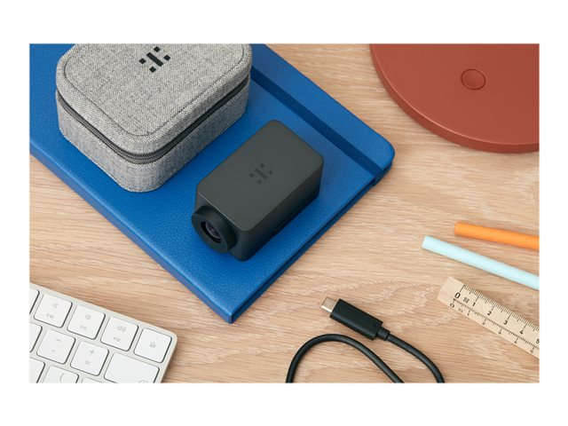 Description du produit Huddly One - Room Kit - caméra pour conférence Type de périphérique Caméra pour conférence - fixé Dimensions (LxPxH) 4 cm x 7.2 cm x 3.5 cm Poids 120 g Couleur Noir mat Technologie de connectivité Câblé Caméra Couleur Modes vidéo 1080/30p, 720/30p Type de capteur optique CMOS - 1/2.3" - 12 MP Iris de l'objectif F/2.8 Interfaces USB 3.0 Certification du logiciel Certifié pour Microsoft Teams Câbles inclus 1 - câble USB-C vers USB-C - externe - 60 cm