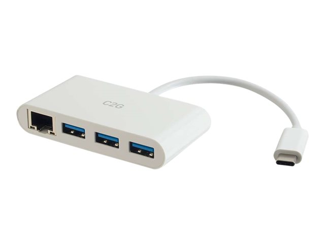 C2G USB C Ethernet and 3 Port USB Hub White