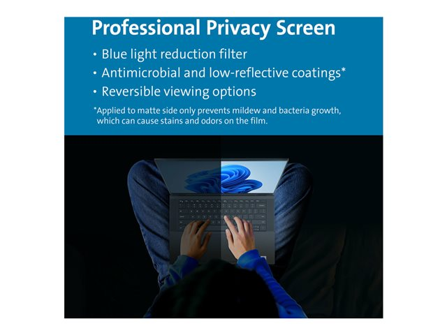 Avec son design ajusté et ses performances exceptionnelles, le filtre de confidentialité magnétique MagPro pour ordinateurs portables 16" (16:10) se fixe et se retire aisément, tout en permettant aux ordinateurs portables ultra-fins de se fermer complètement et d'entrer en veille. Réduit le champ de vision à ± 30° pour renforcer la sécurité visuelle et empêcher toute personne non autorisée de les examiner, au bureau comme dans un lieu public. Une découpe pour webcam garantit une expérience de visioconférence fluide. Grâce à la réduction de la lumière bleue, les rayons nocifs sont filtrés jusqu'à 30 %, ce qui réduit la fatigue visuelle et évite la perturbation de vos cycles de sommeil. Le filtre réversible inclut un revêtement antireflet afin d'optimiser la clarté des informations à l'écran. Le filtre est doté d'un côté mat qui réduit les reflets et les traces de doigts, tandis que le côté brillant offre une meilleure visibilité de l'écran. La fixation magnétique brevetée est pratique et évite l'utilisation d'adhésifs qui pourraient endommager l'appareil. Garantie limitée de 2 ans incluse.
