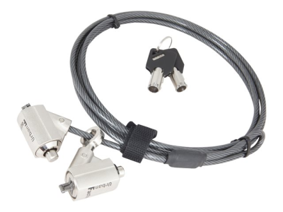 Urban Factory Notebook Double Security Standard Lock (with Key), 90° swivel. Push to lock. 1.5m. White box - Câble de sécurité - noir fumée - 2 m
