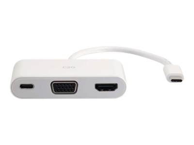 Ce convertisseur adaptateur USB-C vers HDMI et VGA avec alimentation électrique est une solution idéale pour connecter un portable, une tablette ou un ordinateur de bureau activé par USB-C ou par Thunderbolt 3 à des téléviseurs HD, des projecteurs ou autres écrans avec ports HDMI et VGA, et il comporte un port USB de type C avec alimentation électrique. Pratique.