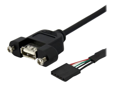 Ce câble USB de 30 cm vers un port USB monté sur panneau inclut une connexion rectangulaire de carte mère à 5 broches sur une extrémité et un port USB A (femelle) monté sur panneau, à l'autre extrémité. Il offre une manière simple et facile d'accéder au port USB 2.0 sur réceptacle monté sur panneau. Le câble de montage sur panneau USB offre une solution pratique pour connecter des clés USB initialisable ou des porte-clés d'authentification à une connexion USB de carte mère. Ce câble rectangulaire de carte mère USB 5 broches vers USB monté sur panneau bénéficie de la garantie StarTech.com à vie.