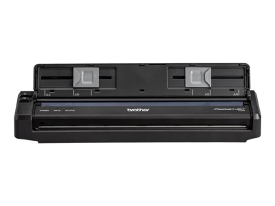 Ce guide papier se clipse facilement sur votre imprimante PocketJet pour faciliter l'alimentation en feuilles individuelles. La partie supérieure se replie pour révéler les guides de largeur réglable qui s'adaptent aux formats de papier ou d'étiquettes souhaités et permettent une alimentation et une impression droites. Rabattez la partie supérieure pour faciliter la manipulation, le transport et le stockage. La conception de l'imprimante vous permet d'accéder pleinement aux ports USB et d'alimentation situés sur le côté de l'imprimante, ainsi qu'aux boutons d'alimentation, d'alimentation du papier et aux boutons radio situés sur le dessus de l'imprimante.