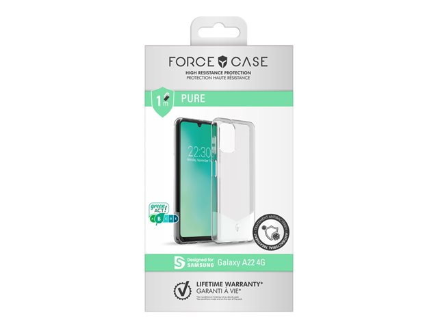 Force Case - Coque de protection pour téléphone portable - antibactérien - polyuréthanne thermoplastique (TPU) - transparent - pour Samsung Galaxy A22