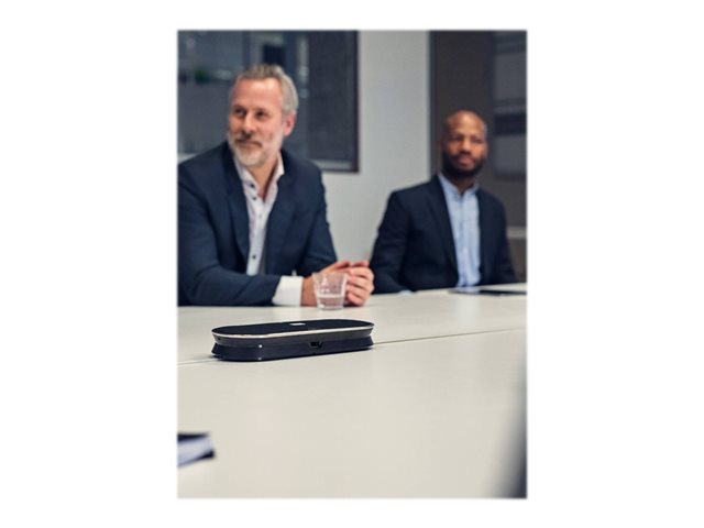 Fédérez vos collègues grâce à un speakerphone évolutif premium Bluetooth adapté pour des réunions jusqu'à 16 personnes, en présentiel. Faites-vous clairement comprendre grâce à six microphones adaptatifs dotés d'une technologie de formation automatique de faisceaux qui isolent les voix humaines des effets de la réverbération et des bruits ambiants. Profitez d'un speakerphone supérieur au son remarquable et naturel.