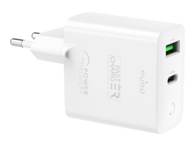 Puro - Adaptateur secteur - 32 Watt - 3 A - Fast Charge, PD - 2 connecteurs de sortie (USB, 24 pin USB-C) - blanc PUROCS32WUSBACWT