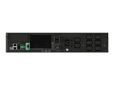 | Fonctions | Batterie remplaçable à chaud, batterie interchangeable, Écran LCD, protection contre les surintensités, protection contre les surtensions, protection contre les sous-tensions, Remote Emergency Power Off (REPO), large plage de tension d'entrée, 2 x groupes de prises contrôlables |
