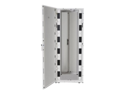 Armoires informatiques riches en fonctionnalités optimisées pour l'architecture en rangées InfraStruxure, la gestion des câbles, la distribution d'alimentation ainsi qu'une circulation d'air optimale.