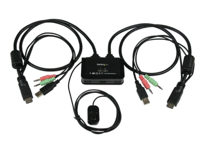 StarTech.com Switch KVM USB HDMI à 2 ports - Commutateur écran clavier souris alimenté par USB avec câbles KVM et commutateur à distance - Commutateur écran-clavier-souris/audio - 2 x KVM / audio - 1 utilisateur local - de bureau