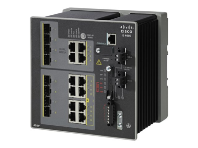 Cisco Industrial Ethernet 4000 Series - Commutateur - Géré - 4 x Gigabit SFP + 8 x 10/100/1000 (PoE+) + 4 x SFP Gigabit combiné - Montage sur rail DIN - PoE+ - DC power - reconditionné - Conformité TAA